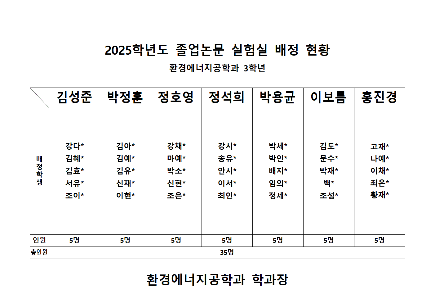 [학부] 2025학년도 졸업논문 실험실 배정 현황