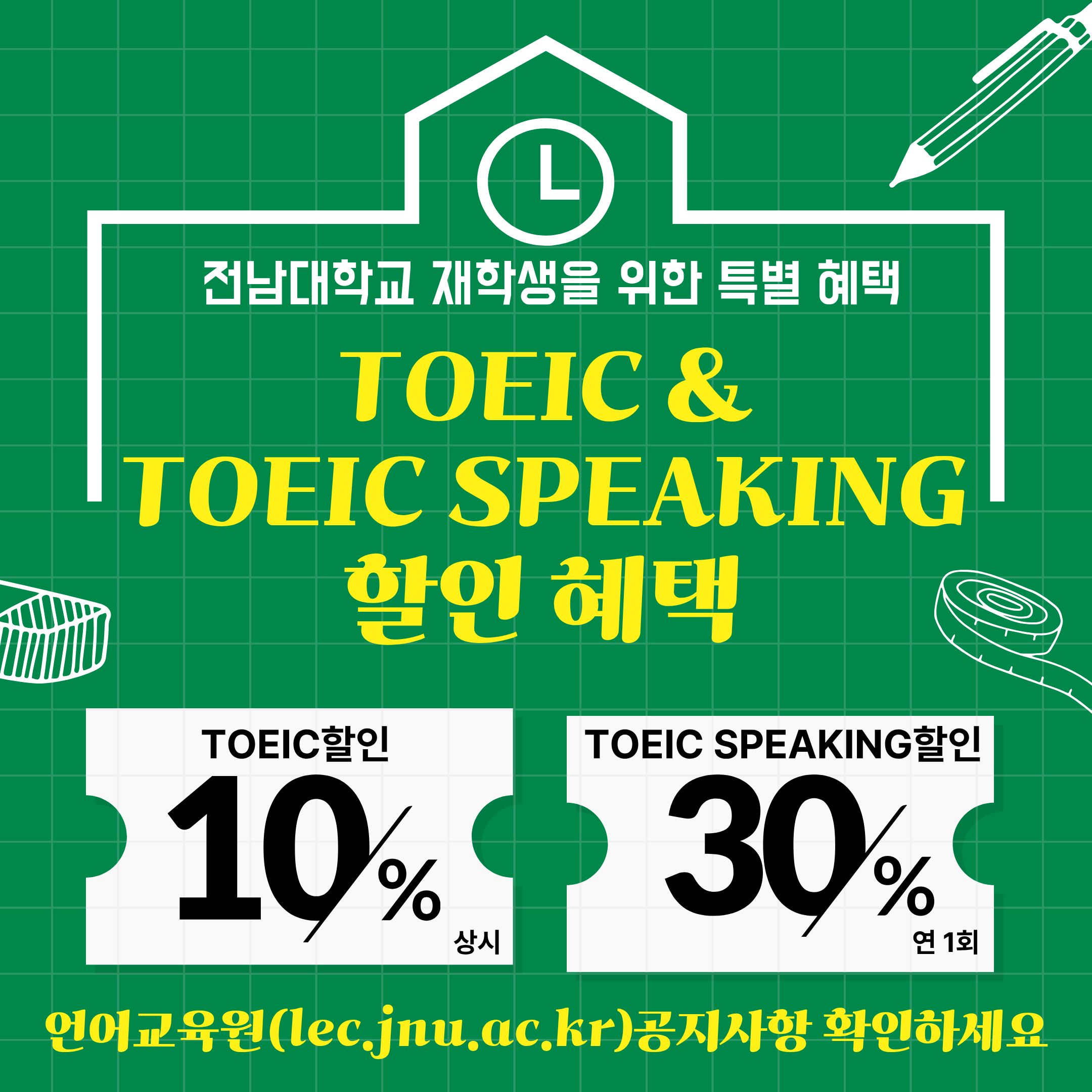 붙임 1. 전남대 재학생 TOEIC 응시료 할인 안내문 1부.